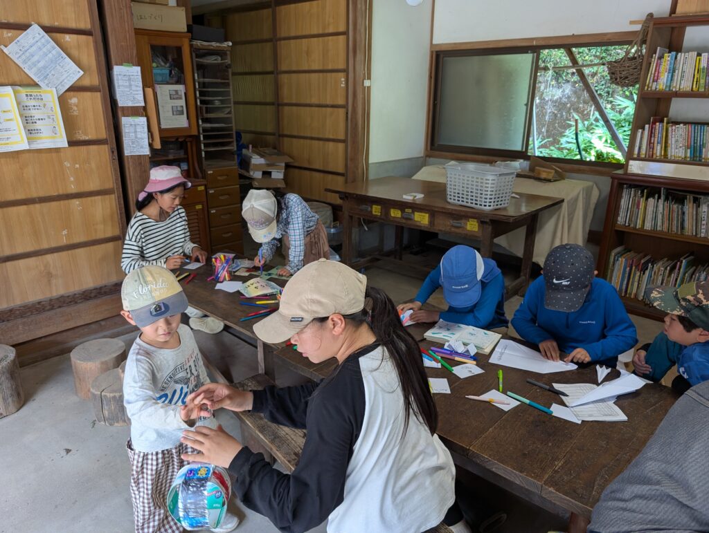 でも他に材料は持ってきてないので、「じゃあ、一応置いておくけど、他に作りたいものがある人は、自分で考えてね。」と伝え、もりのこえん幼児の方の準備(今日は別プログラム)をしていました。