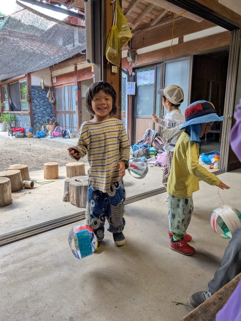 そのころ幼児期は、出来上がったビッグヨーヨーと格闘していました(笑)。ヨーヨーをポンポンやってると、自分もぴょんぴょん飛び跳ねてしまうようで、皆でぴょんぴょんぴょんぴょん楽しそう。