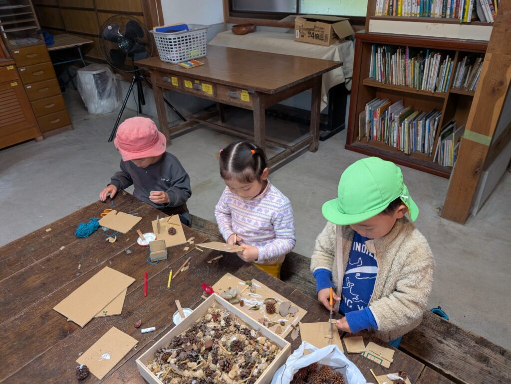 もりのこえんでは、子どもたちが本来持っている感性を大切にしながら、様々な「つくる」を体験し、1から生みだす力を支える造形の時間を設けています。