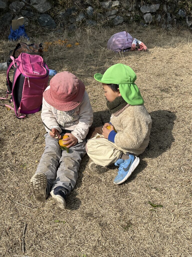 途中で諦めて持って帰る子もいましたが苦労して剥いたあとのスイートスプリングは美味しかったようです。