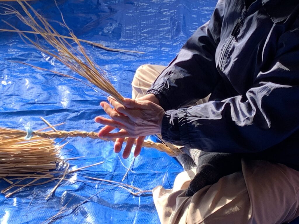 わらの中のお米が付いていた芯の部分を「ミゴ」というそうです。そのミゴを使って箒を作ります。小さな箒ですが、とても弾力があってしなやかな箒が出来ます。