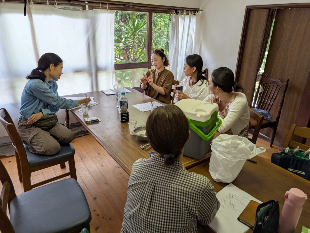 今回のおまつりのテーマは、「もりのこえんをまるごと体験!」このテーマを元に、もりのこえんがある上天花の自然を体験していただくための内容を皆で1から考えています。この1から皆で作り上げるという事も今回のもりのこえんまつりの目標です。あらかじめ決められた事を、皆で分担していくのも1つのやり方ですが、今回は、ゼロから皆で決めていきました。