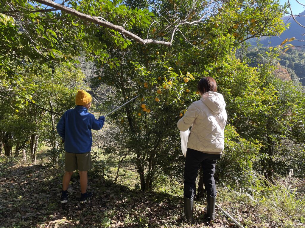 お野菜を収穫した後は、早速柚子をもぎに果樹園へ。