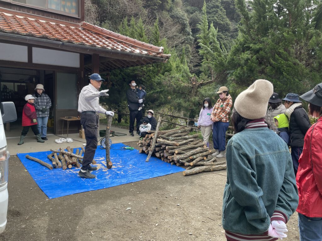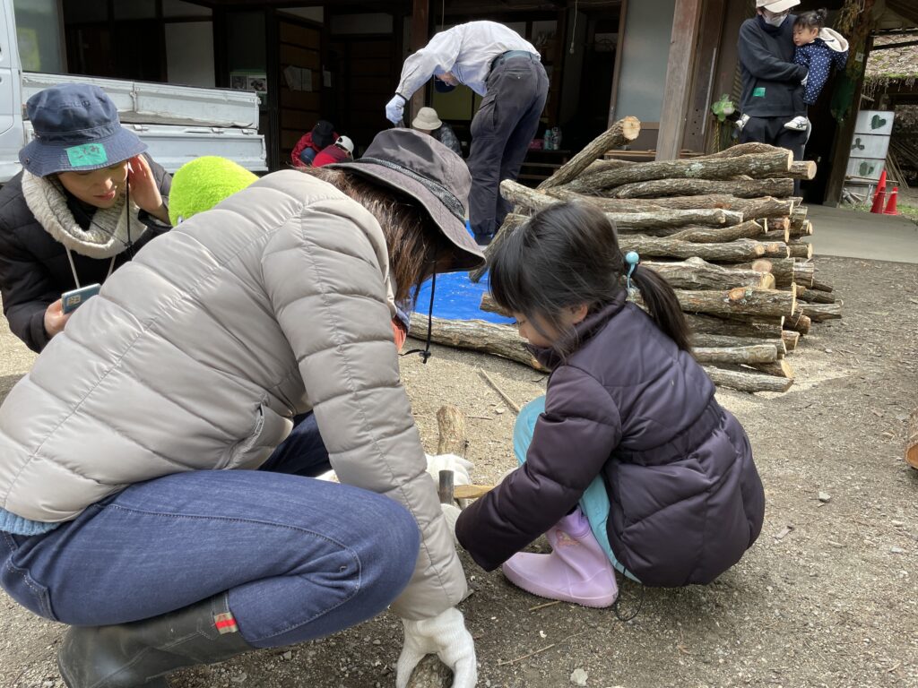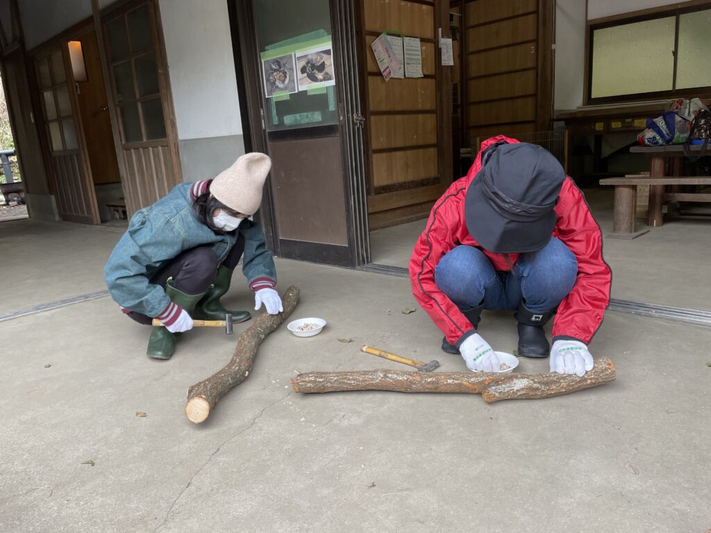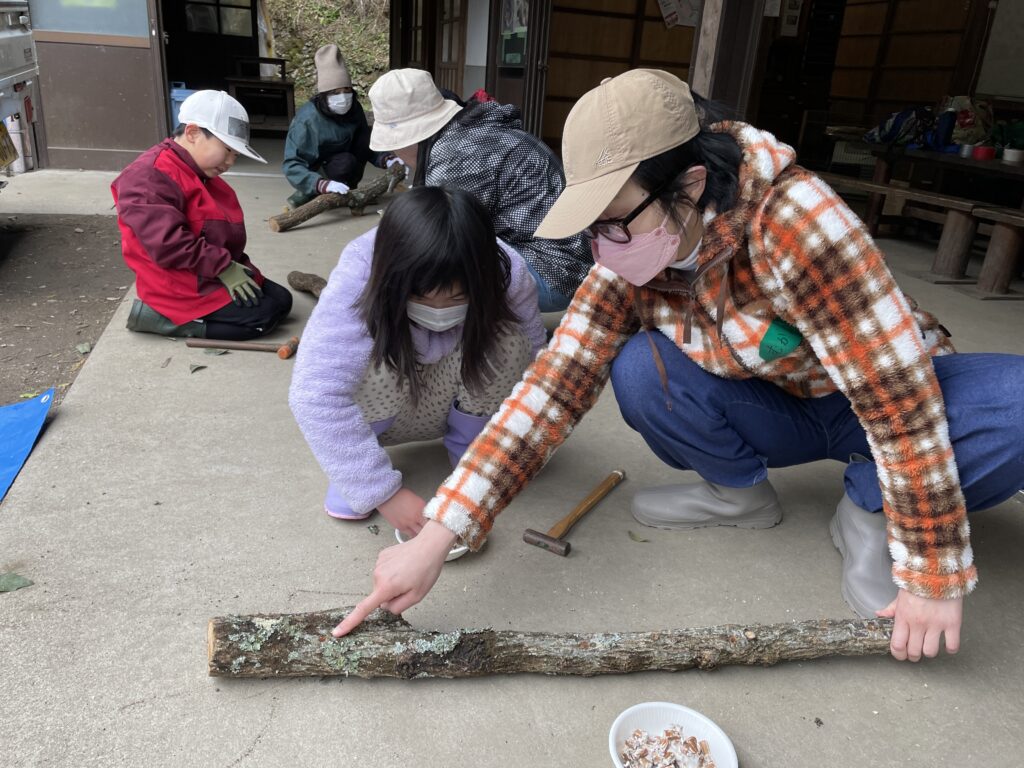 その後、今日のメインの活動、しいたけの駒打ち体験。