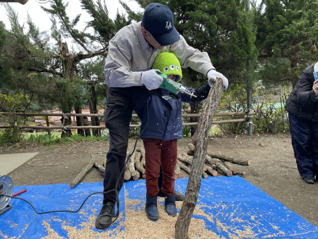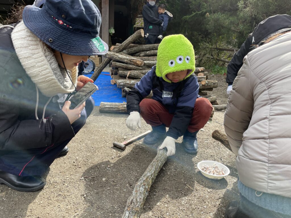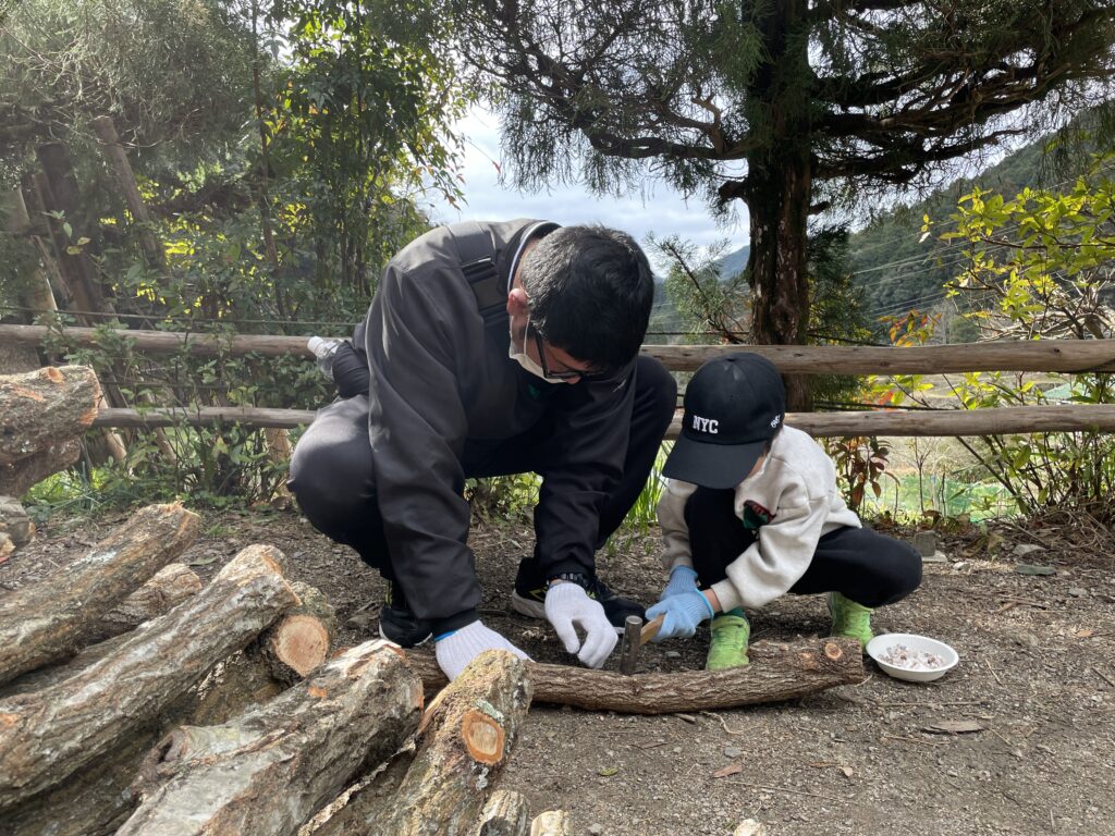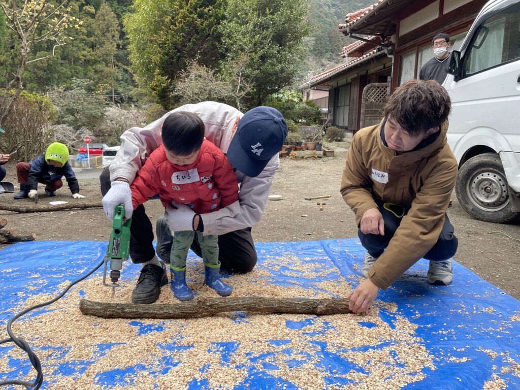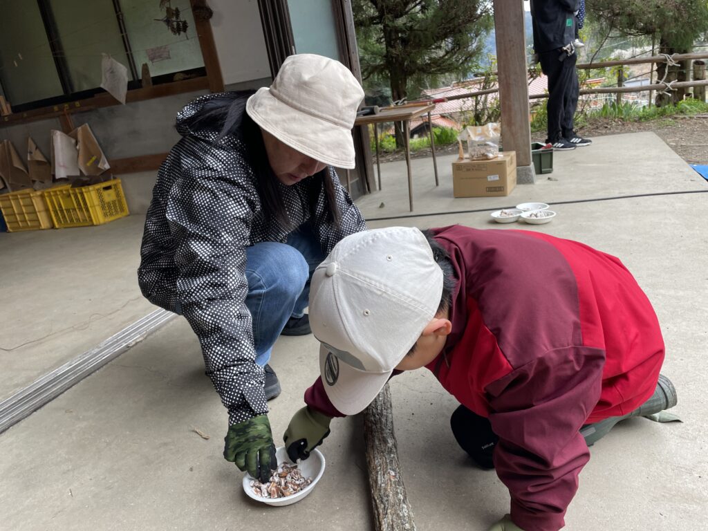 その後、今日のメインの活動、しいたけの駒打ち体験。
