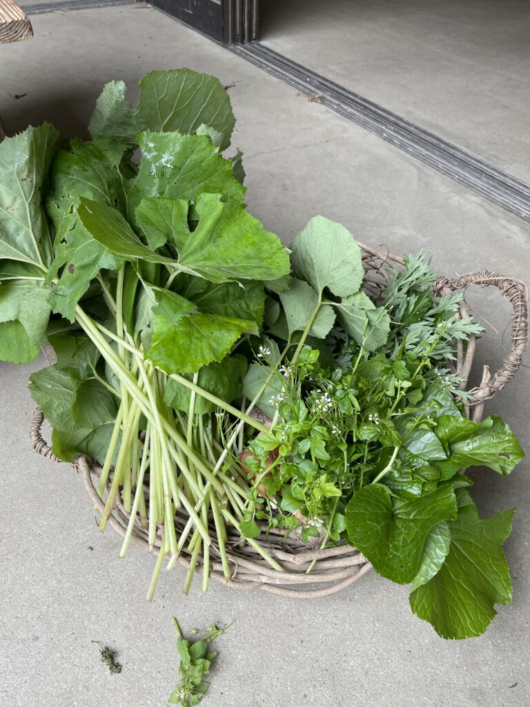 畑は端境期ですが、野山は豊かで、今日のお昼は山の幸でいっぱいになりました。
