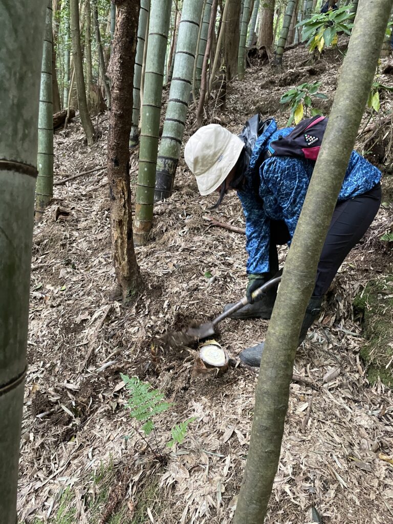 傾斜が急で、歩けるかな?と思いましたが、大人の心配をよそに、子ども達はタケノコの目指して竹林をグングン進んでいきますね。転んでもすぐに立ち上がって、夢中でタケノコを掘る姿にたくましさを感じました。大人が思うより、子どもって強い。