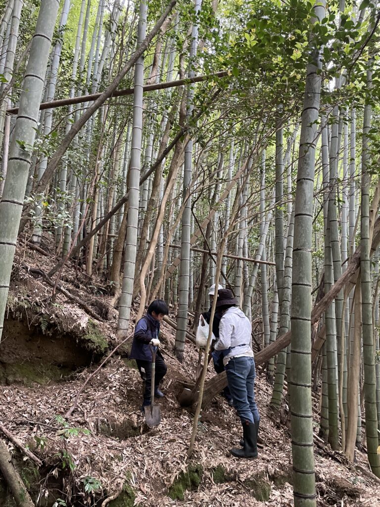 ・家族全員初めてのタケノコ掘りでした。たけのこの生え方や育ち方、掘り方や難易度など体験しないとわからないことをたくさん学ぶことができました。森の中での活動全てが新鮮でとても楽しかったです。子どもは虫を怖がらないので、作業中に見つけた大きくて太いミミズを、参加していたお兄ちゃんと興味深そうに触ったり観察していました。朝処理をお手伝いした新鮮なお野菜や紹介していただいた畑のお野菜を子どもも美味しそうに食べていました。食育にも良いプログラムでとても良い体験ができました。ありがとうございました。(30代・周南市)
