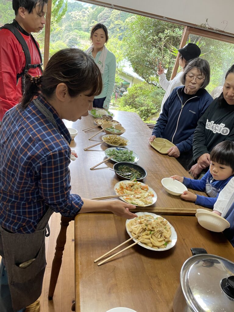 ・自然の中でなかなか体験できない事ができて有難かったです。ごはんも美味しくて食べて・体を動かして健康になった気がします。たけのこの食べ方も教え頂いたのでこれからがんばります!(40代・小郡地区)
