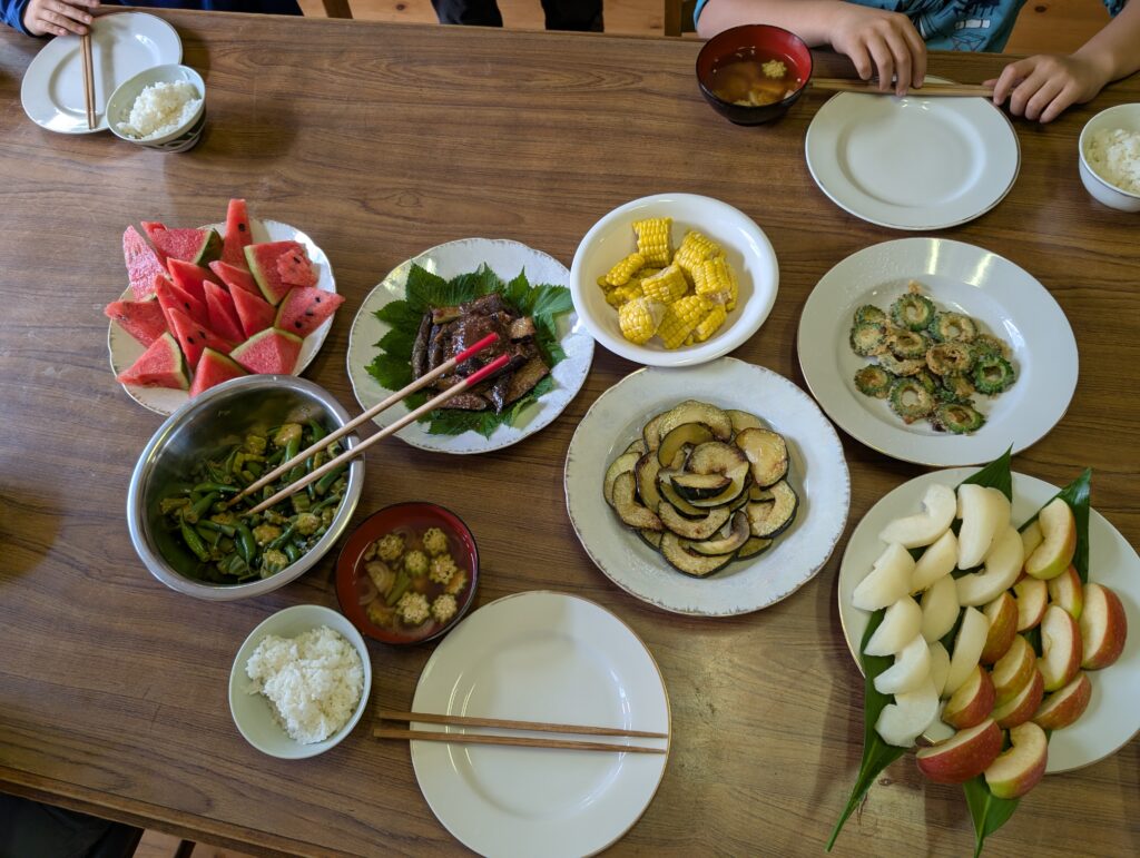 午前中汗だくで働いた後は、、Wさんと小3Kちゃんが作ってくれた昼ご飯!