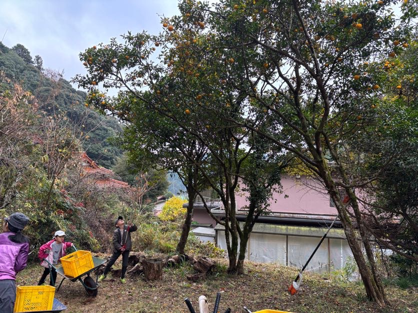 次は、お隣の福田さんちの柚子もぎ。