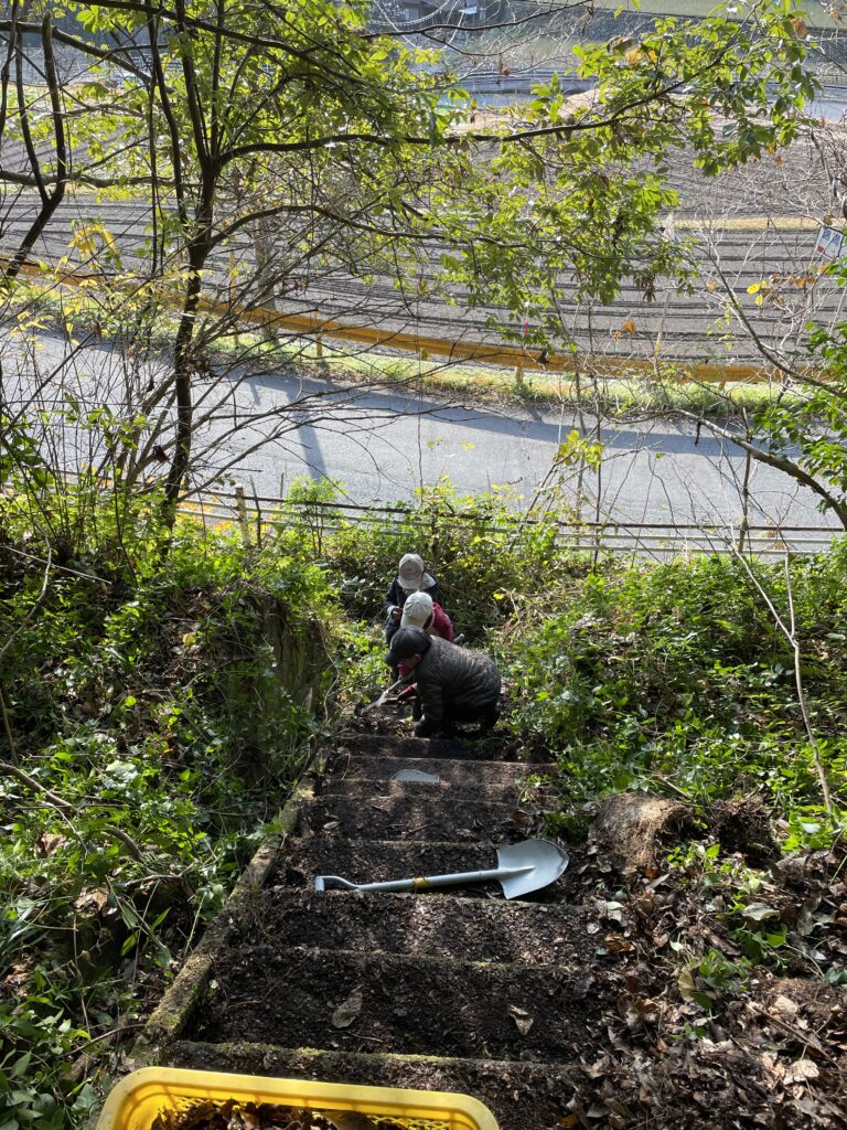 日曜日に行う土曜学校の親子プログラムで使う登山道の整備。