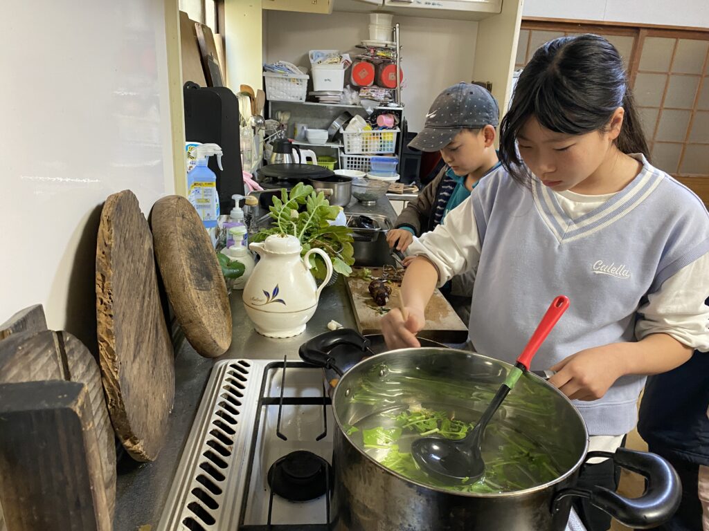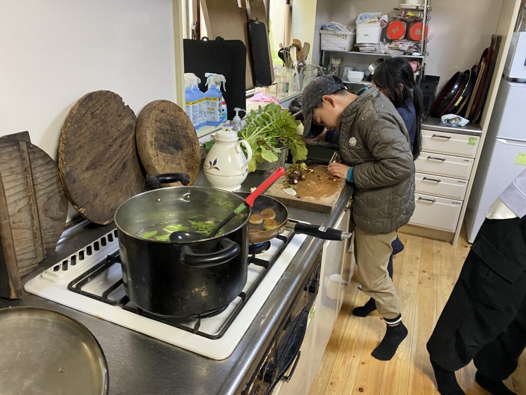子ども達は早速台所へ行き、調理開始。今日は、大人は手を出さず、扉の向こうで事務局スタッフがそっと見守るだけです。