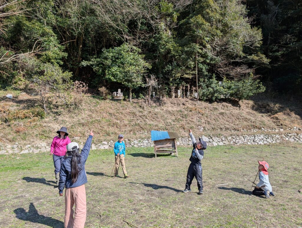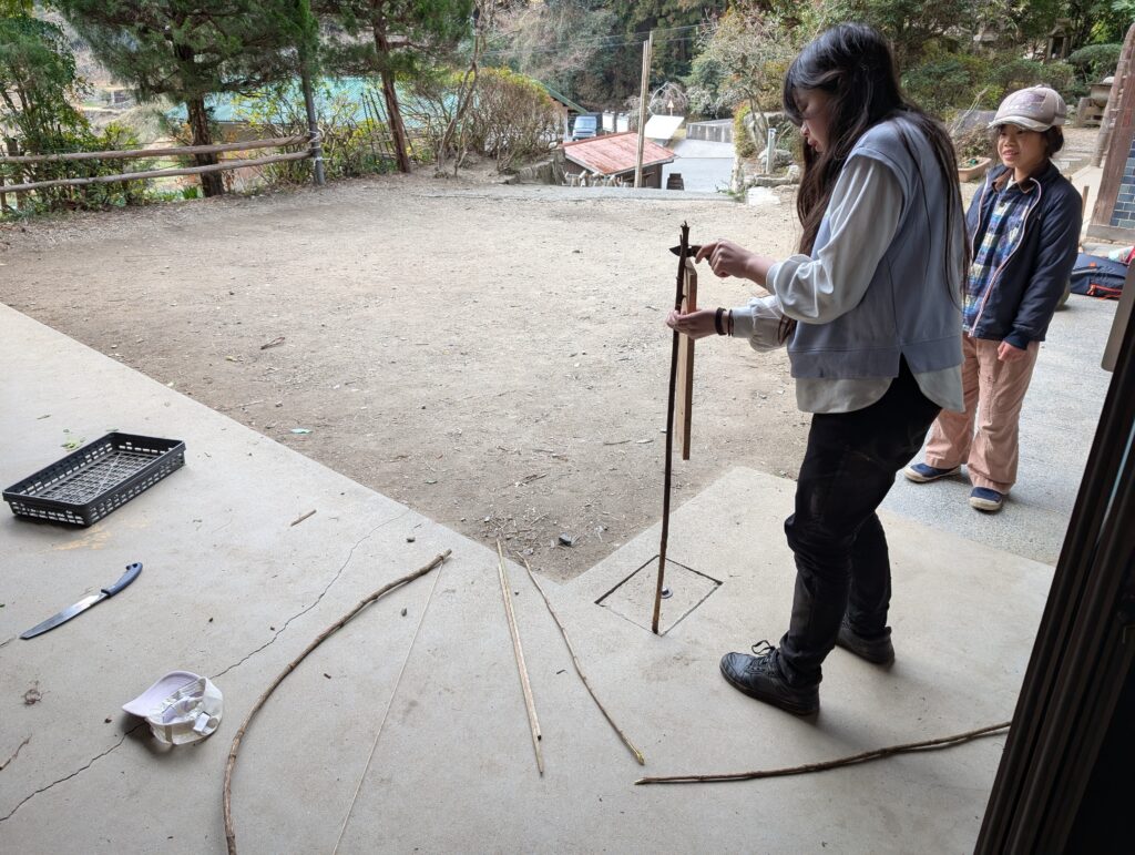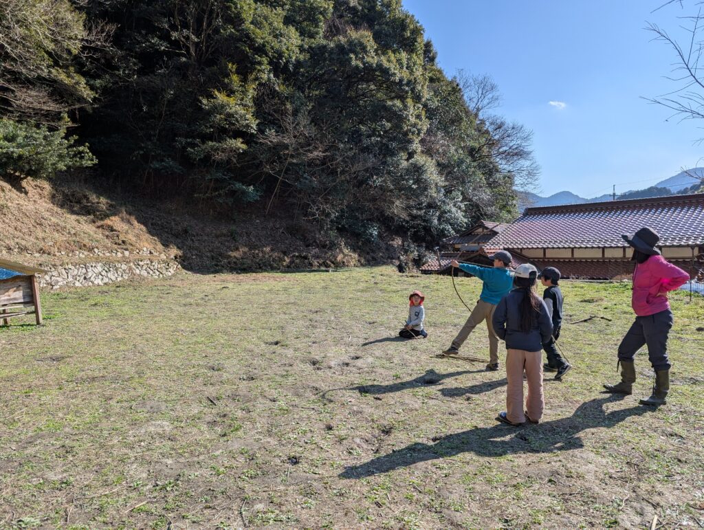 そして最後は、数週間前からNちゃんが作っている弓矢の飛ばし大会で盛り上がりました(笑)。恒例になりそうな予感…。