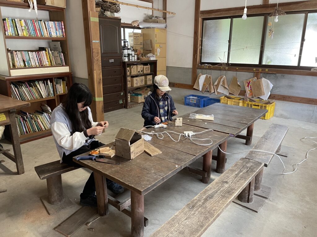 大人が木材を使って、棚など造作しているのを見て、自分達も何か作ってみたい!と感じたようです。こういう流れはとても自然で、想像力、実践力を育む機会だと思います。生きた学びですね。