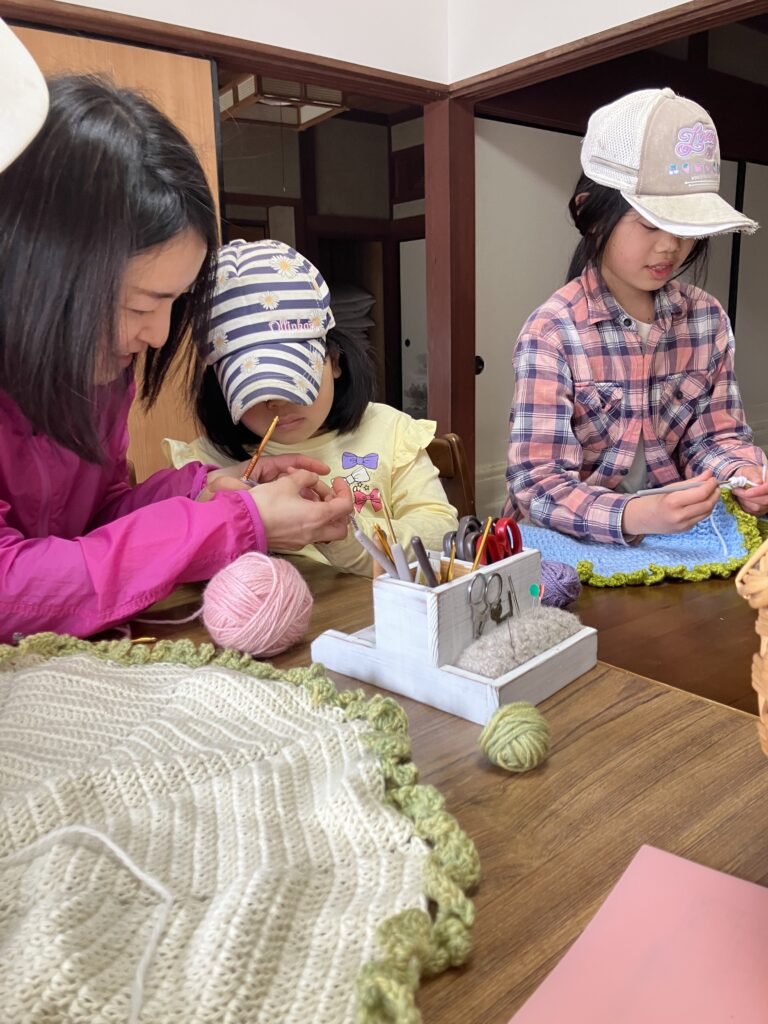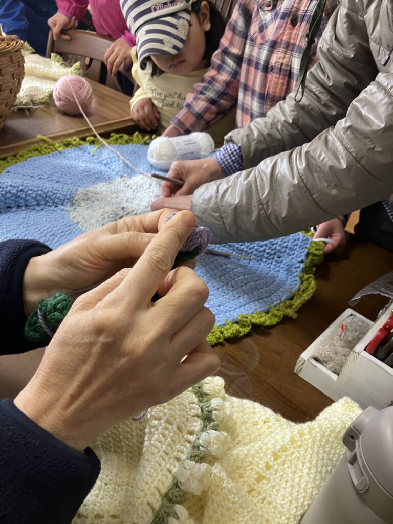 あみあみに夢中になる人もいれば、編み物をしている手先が気になって横で観察して過ごす人もいました。