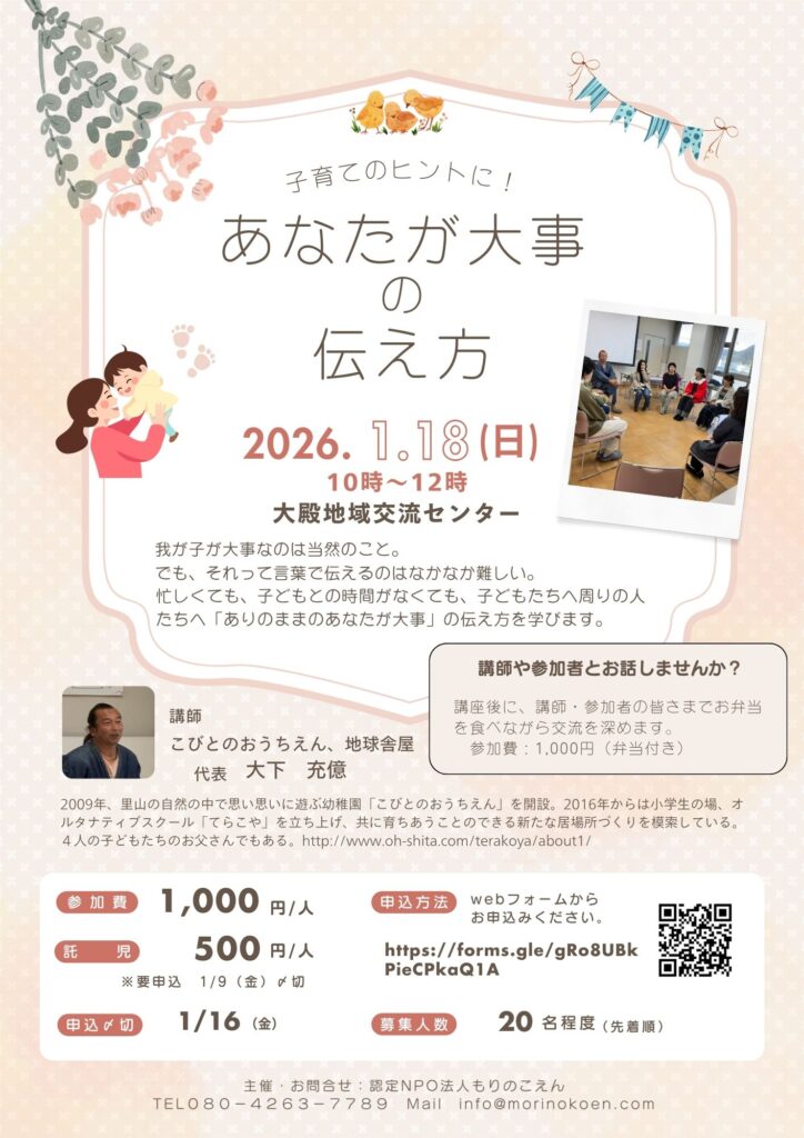 受講料:1,000円/人 ※託児あります。500円/人 1/9までに要申込。