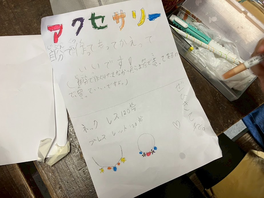 その後はとっても楽しそうに話し合いを進め、自主的に看板やチラシを作っていた子ども達。