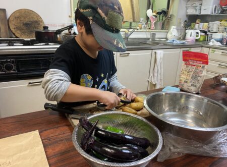 昼食 | もりのこえんの畑で収穫したお野菜で作った昼食を食べます。 |